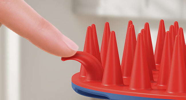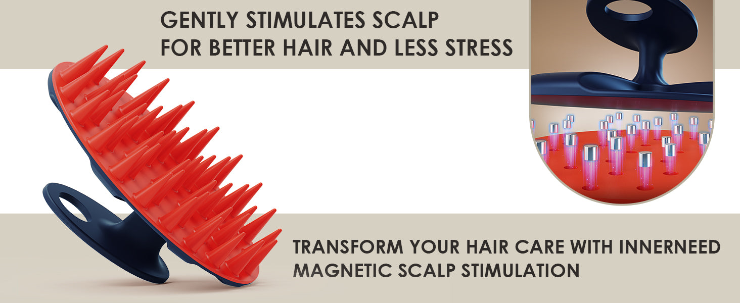 Featuring an upgraded magnetic design, this scalp massager brush easily attaches to any metal surface for convenient, space-saving storage.