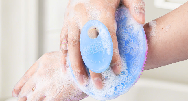 Translucent Magnetic Silicone Bath Brush | Gentle Clean & Easy Storage