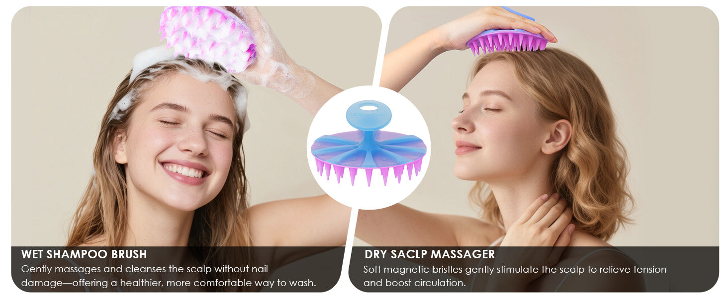 - Dual-Use for Wet & Dry Scalp Care – Perfect for use in the shower with shampoo for deep cleansing, or on dry scalp for a relaxing magnetic massage that may relieve fatigue and support healthier-looking hair. Suitable for men, women, and individuals with scalp care routines.